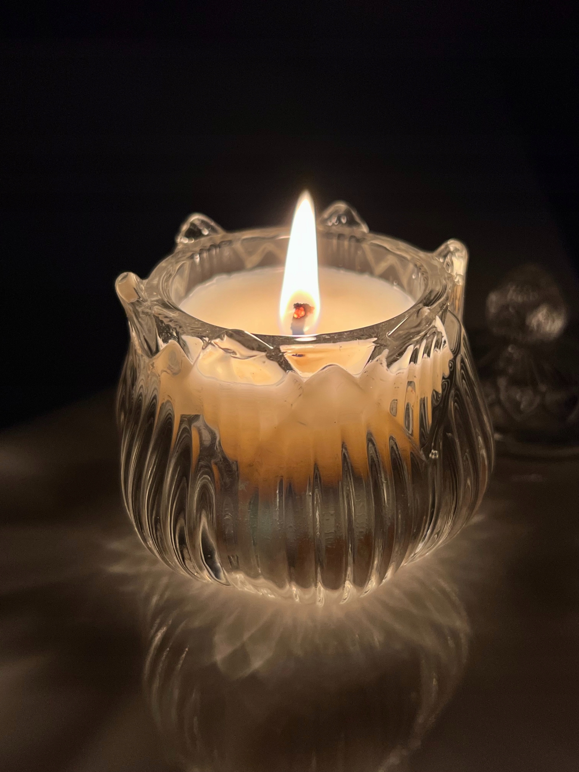 Po spaleniu świecy mogą pojawić się delikatne nierówności na powierzchni – to naturalna cecha wosku sojowego, podkreślająca jego ekologiczną naturę.